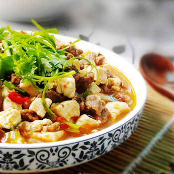 嫩豆腐2塊、牛肉160克